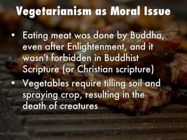 Other Buddhists do eat meat and the texts of the Pali canon do not specifically forbid eating meat. Instead, the Buddha is depicted there ruling that monks and nuns can only eat meat if the animal was not slaughtered specifically to feed them.