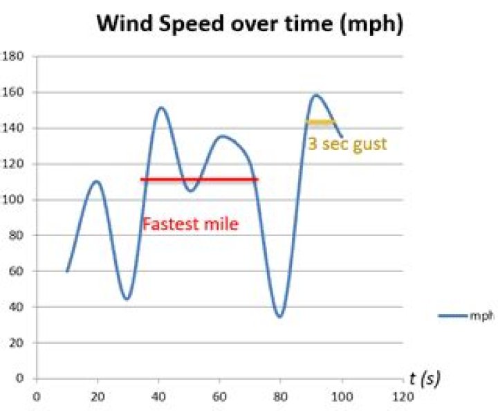 What is 3 second gust wind speed?