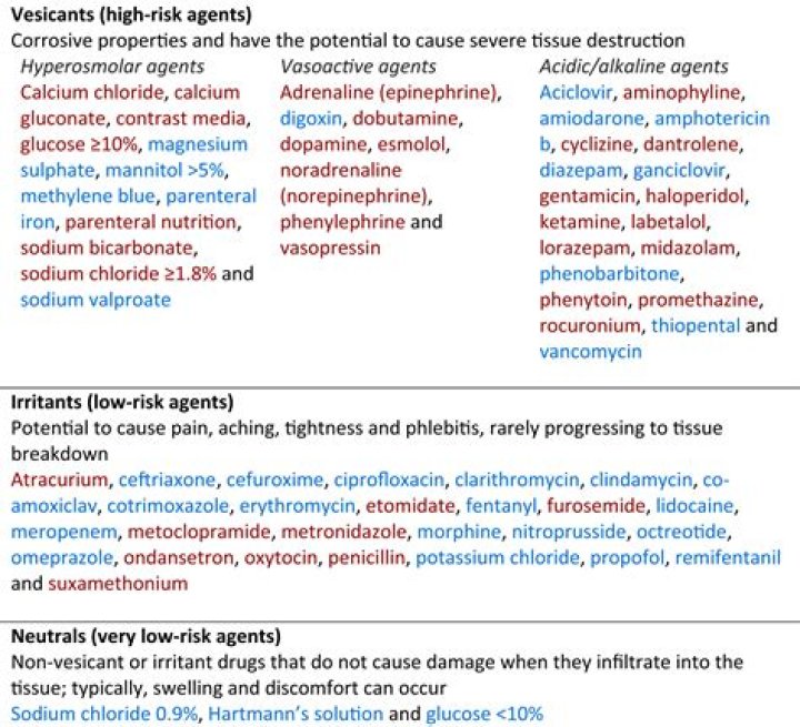Chemotherapeutic agents have obvious deleterious effects when extravasation occurs and can lead to more severe injury. These drugs can be classified as irritants or vesicants, depending on the potential for localised toxicity and tissue damage....